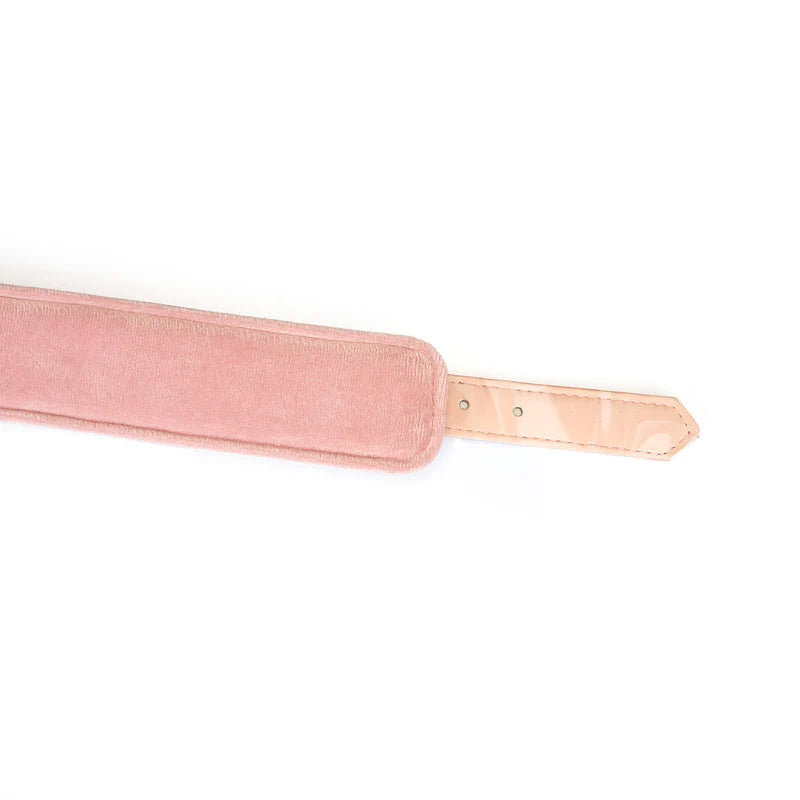 - Parte da coleção Boudoir Amor: combina com venda, tornozeleiras e mordaça em tons pastel com padrão ondulado.