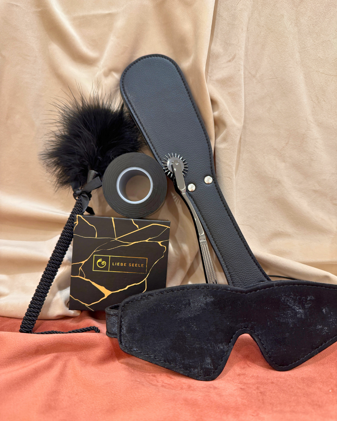 O nosso conjunto Descoberta Kinky convida-te a explorar o jogo delicioso entre o controlo e a rendição. Leva a curiosidade pelas mãos e deixa-te guiar por sensações que dançam entre o suave e o intenso. A venda desperta o mistério, a roda de picos provoca arrepios, a fita prende-te no tempo e o tickler percorre a pele como um sussurro. A completar esta experiência temos o paddle, firme e elegante. Explora esta experiência feita de contrastes, onde o prazer nasce do inesperado e a confiança é a tua melhor parceira.